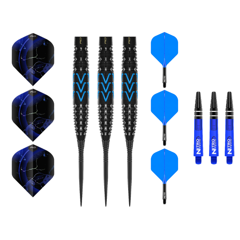 Crafted from 90% premium tungsten, each Amp dart combines professional-grade durability with refined feel. The precision engineering ensures consistent balance and effortless handling, while the distinctive machined grip pattern channels pure energy down the barrel.