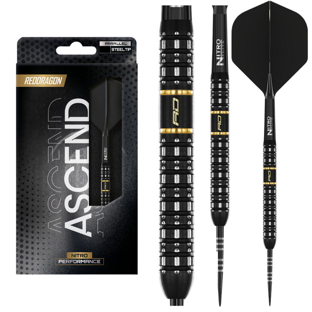 The Red Dragon Ascend Darts - crafted from 90% tungsten for ultimate balance, feel, and control. Featuring Nitroflite Integrated Flights and NitroTech shafts, this range delivers pro-level performance with a smooth, confident release.