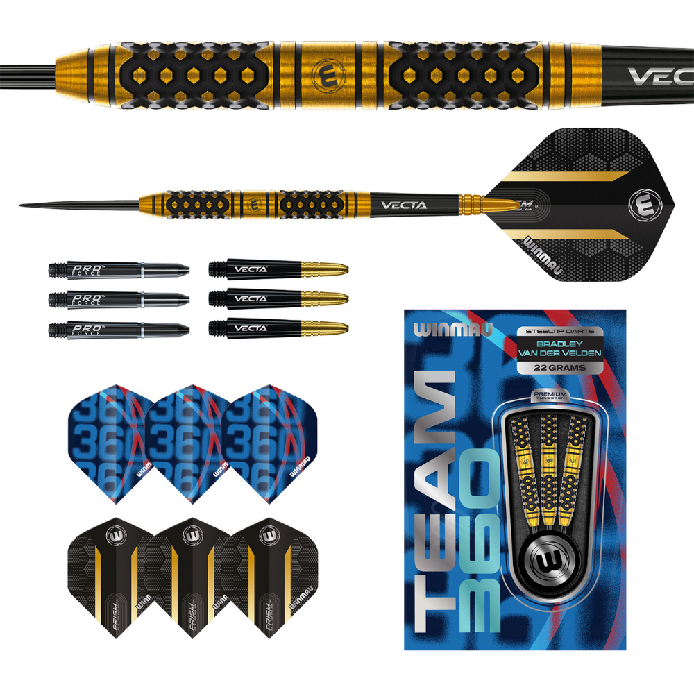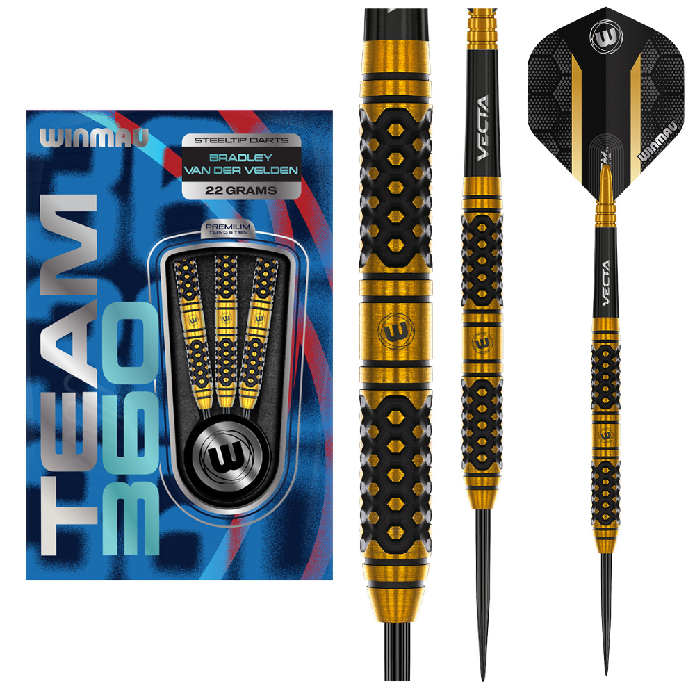 Completed with short black and gold Winmau Vecta shafts and extra thick 100-micron flights, Bradley’s darts are built for stability, balance, and match-winning control.
