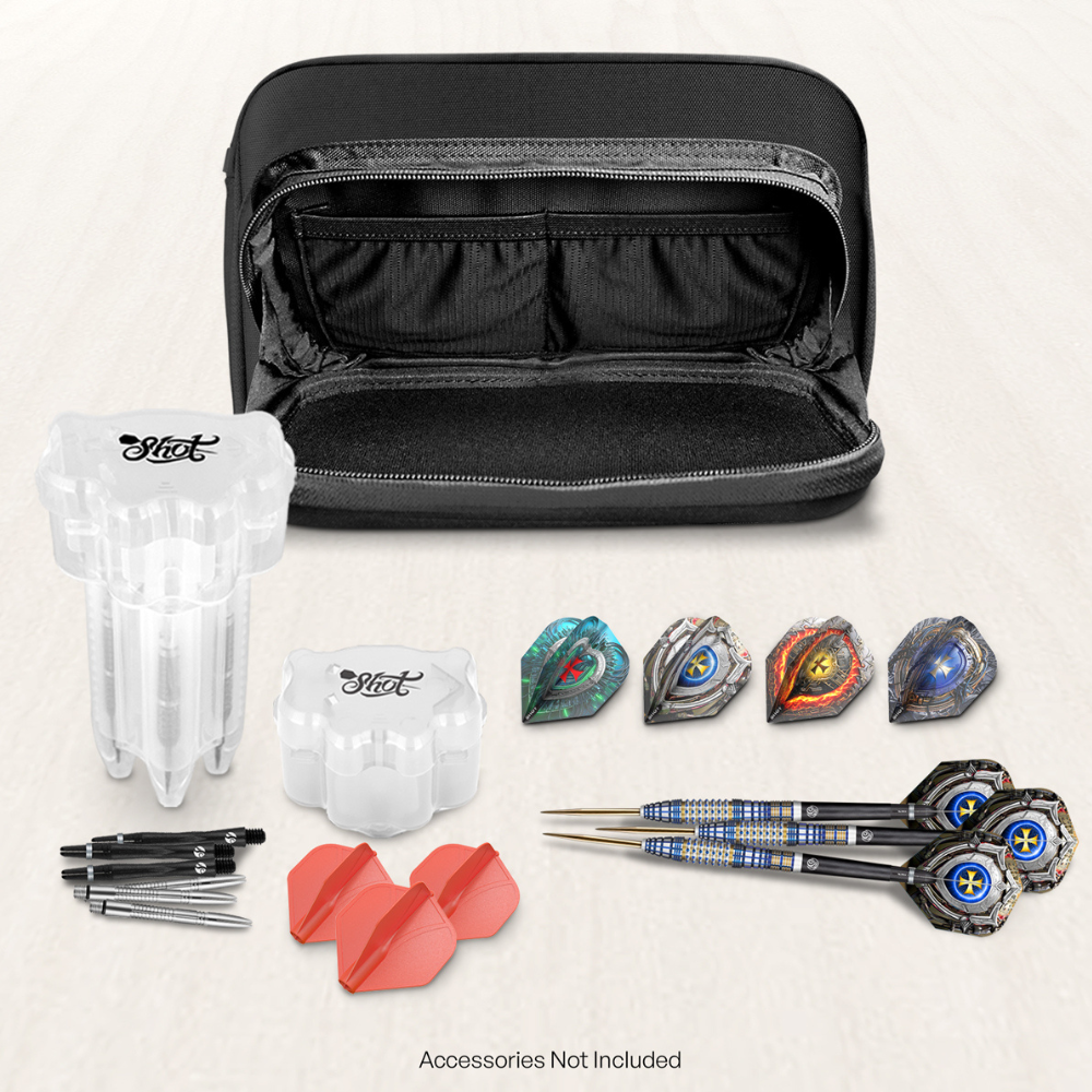 The Shot Go Bag is a hybrid hard-shell dart case at the front and a soft-shell carry compartment at the back, designed for players on the move. Tough, lightweight, and built to keep your gear organized, it’s everything you need for league nights, tournaments, or travel. Smart Storage: