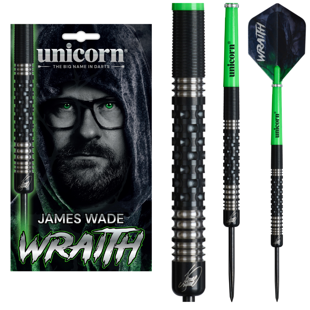 Building on the success of the game-changing Wraith® grip, the Unicorn James Wade Wraith® Dart combines innovative engineering with The Machine’s trademark precision. Crafted for advanced players, the barrel’s parallel 90% tungsten construction offers a slim profile for tighter groupings, while the Wraith® series’ hallmark complex milled grip design, placed centrally, delivers maximum control for consistent performance. Finished with a sleek stealth-black PVD coating and fitted with Epic Soft Tips, the James Wade Wraith dart ensures elite performance with every throw.
